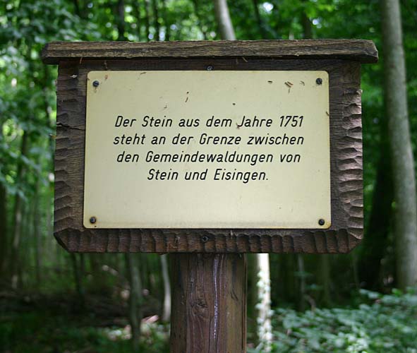 | Archiv-Nr. GS2272 Gemeinden: Stein - Eisingen Gebiet: Baumberg Grenzverlauf: AbbiegungJahr: 1843 Höhe: 550, Breite: 205, Tiefe: 170 |