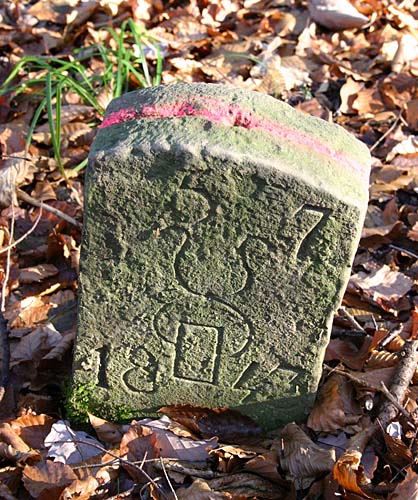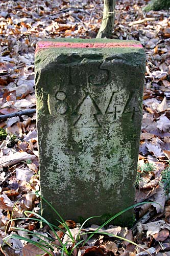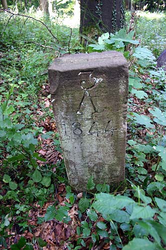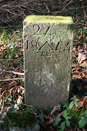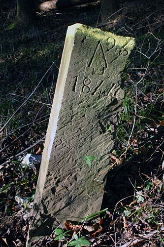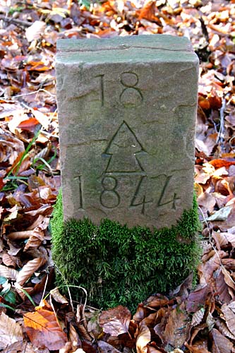 Archiv-Nr. GS2052 Gemeinden: Stein - Eisingen Gebiet: Baumberg Grenzverlauf: AbbiegungJahr: 1844 Höhe: 450, Breite: 205, Tiefe: 125 |