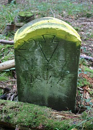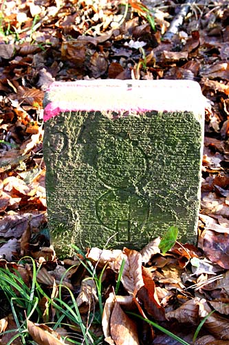 Archiv-Nr. GS1905 Gemeinden: Stein - Eisingen Gebiet: Baumberg Jahr: 1835 Höhe: 710, Breite: 220, Tiefe: 180 Zustand: schräg eingesunken und verwittert |