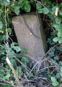 Archiv-Nr. GS2742 Gemeinden: Stein - Eisingen Gebiet:Sennich Jahr: 1835 Höhe: 580, Breite: 240, Tiefe: 160 Zustand: schräg am Feldrand stehend, teilweise von Gebüsch verdeckt |