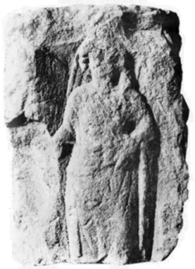 Ein Relief aus rotem Sandstein, 70 cm hoch, eingemauert an der