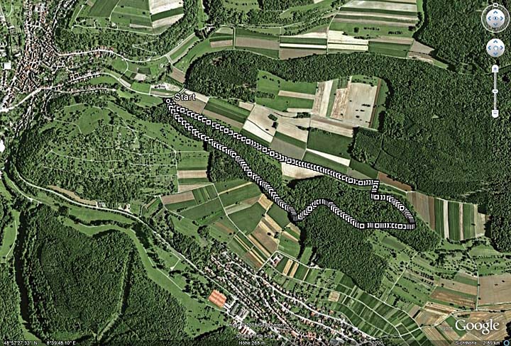 Google-Luftaufnahme mit eingezeichneter Wanderroute (GPS-Track) |