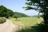Linksbogen - die Wiesen und Felder des Neulinger Grund schimmern schon durch