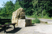 Vor einer Wasserpumpenstation eine Bank und ein herrlicher Ausblick