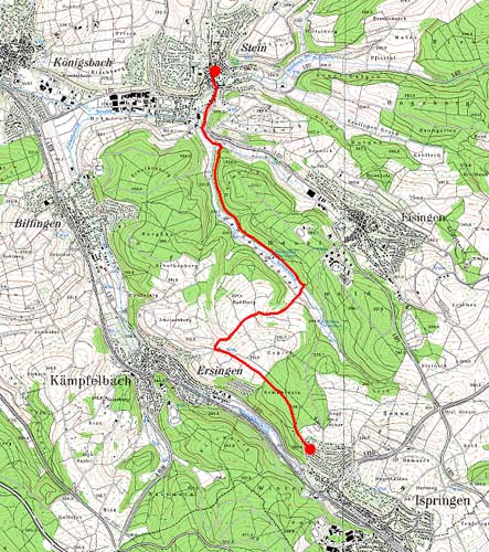 Teilstück: ... Bretten-Rinklingen - Stein - Ispringen - Pforzheim ...Die folgenden Fotos wurden zu verschiedenen Jahreszeiten aufgenommen und zeigen so den Reiz dieses Wanderweges zu allen Jahreszeiten. von Stein nach Ispringen 6,3 km |