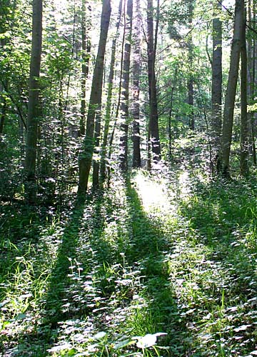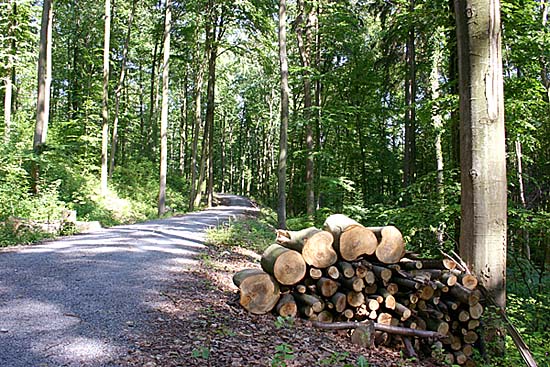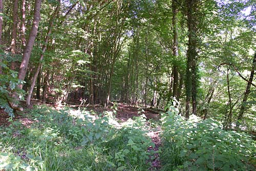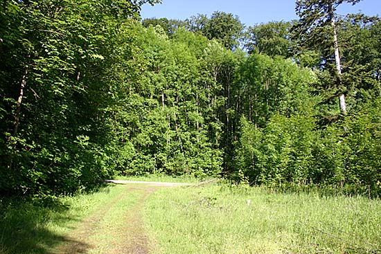 Der Pfad aus Waldsicht. Der Pfad führt nach ca. 75 m auf den parallel