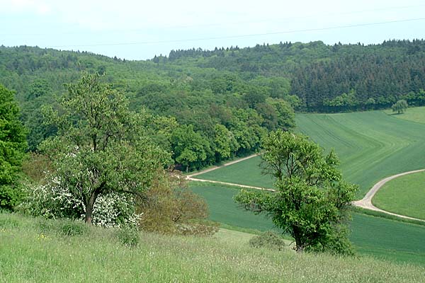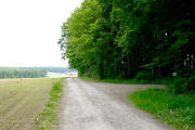 verheerenden Stürme der letzten Jahre. Der Weg steigt an. Nach Austritt aus dem Wald sieht man in der Ferne den Heimbronner Hof. Hier rechts abbiegen in den Schafweideweg. |