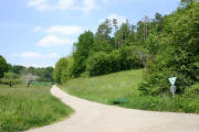 herum und verändert sich abfallend in einen asphaltierten Weg.