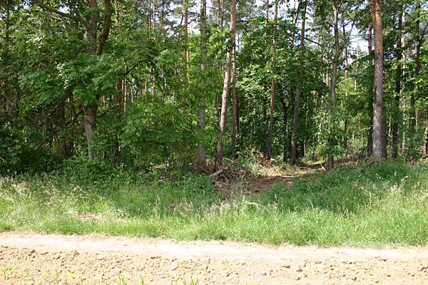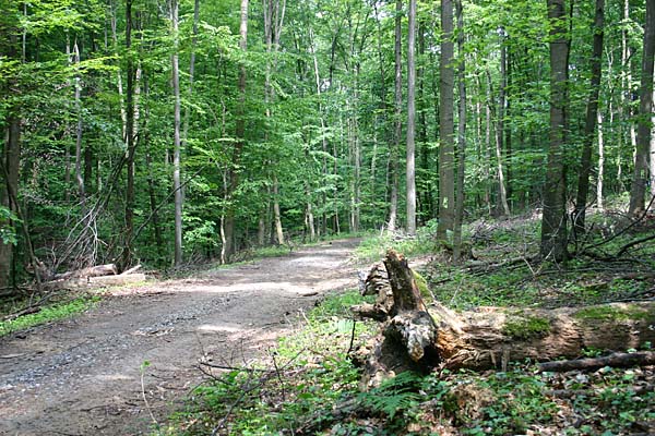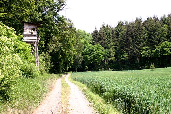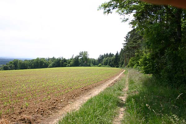 auf ein Feld führt. Hier scheint der Weg zu Ende zu sein. Ca. 10 m vor dem Waldrand rechts in einen Waldwirtschaftspfad steil aufwärts abbiegen. |