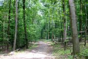 der Pfad rechts ab und verläuft weiter innerhalb des Waldes parallel zum