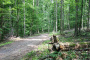 Lindberg. Waldparkplatz. Hier rechts in den Mittelbergweg abbiegen am Waldrand entlang. |