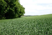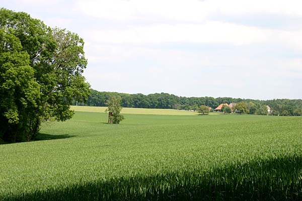 Feld. Nach einigen Minuten tritt der Pfad nach links aus dem Wald auf ein Feld. |