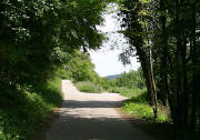Weiter zwischen Wald und Feld bis am Ende des Feldes der Weg in den Wald des Mittelberges führt. |