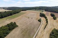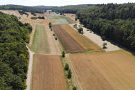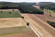Immer weiter geradeaus zum gegenüberliegenden Wald. |