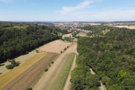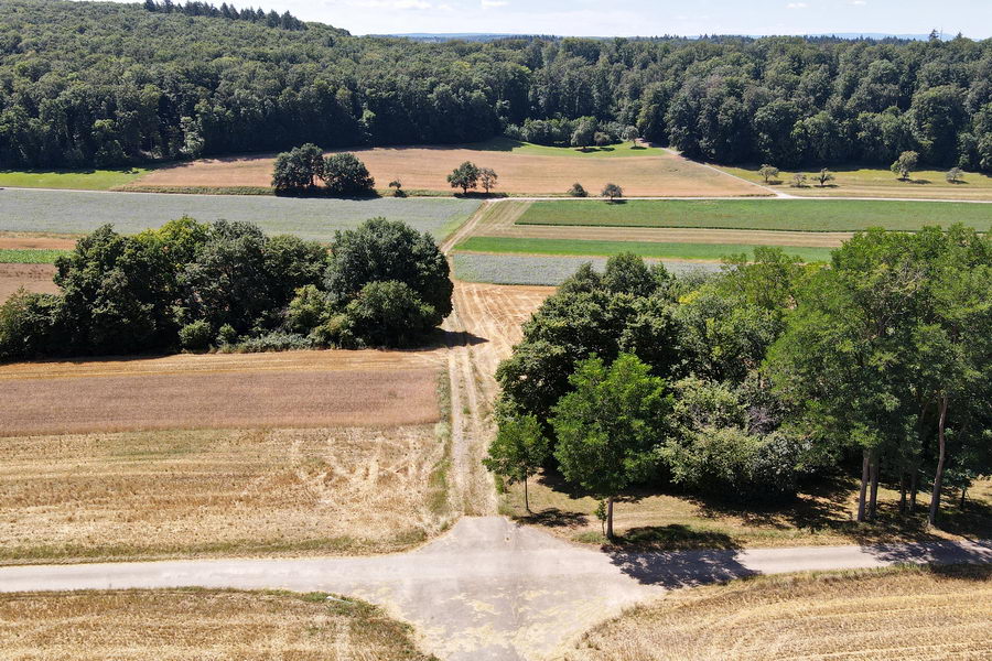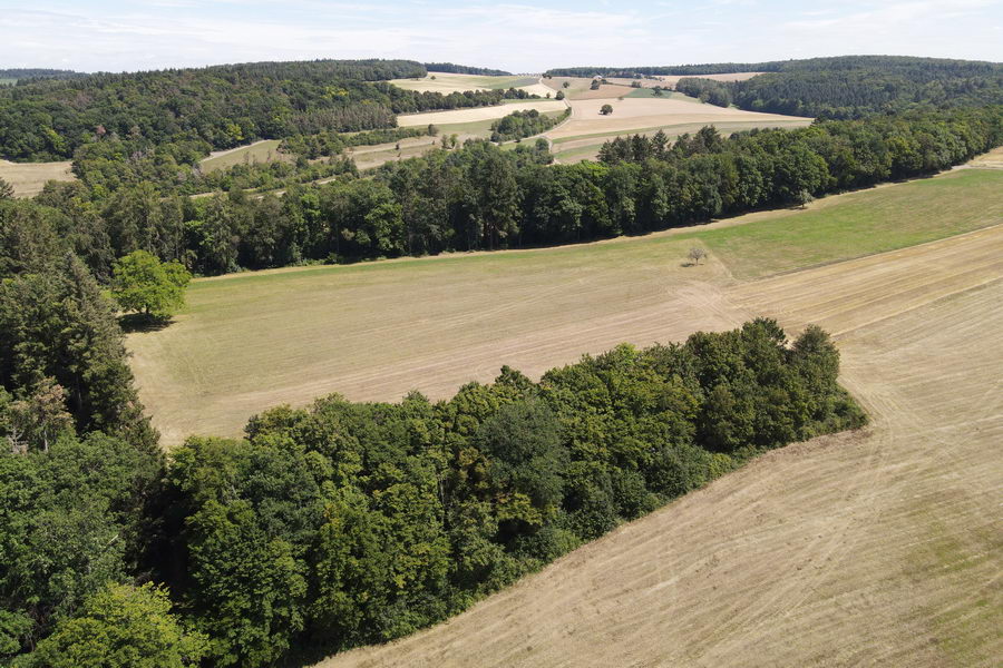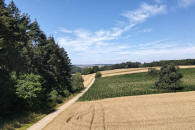 Am Ende des Waldes beginnt die Hochfläche, Felder vor dem Wald „Neuer Galgen“. |