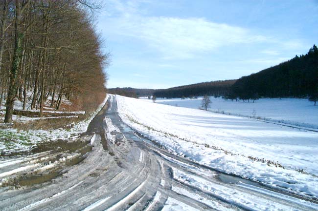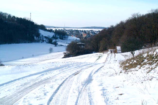 Vom Neulinger Grund ansteigender Weg. Links des Weges Wald, rechts der Neulinger Grund. |