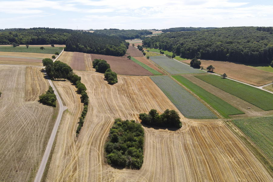 Von der Höhe ein Blick in den Neulinger Grund. Im Hintergrund Stein |