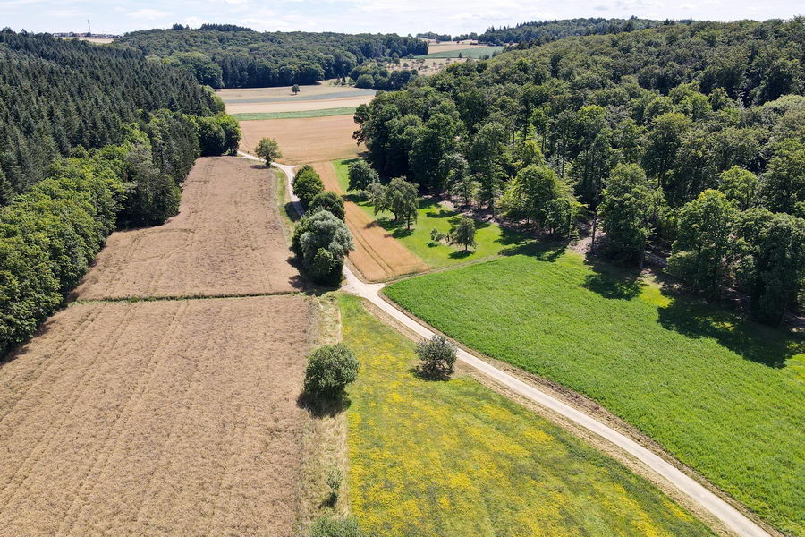 Der Weg steigt stetig an am Neulinger Grund vorbei. |