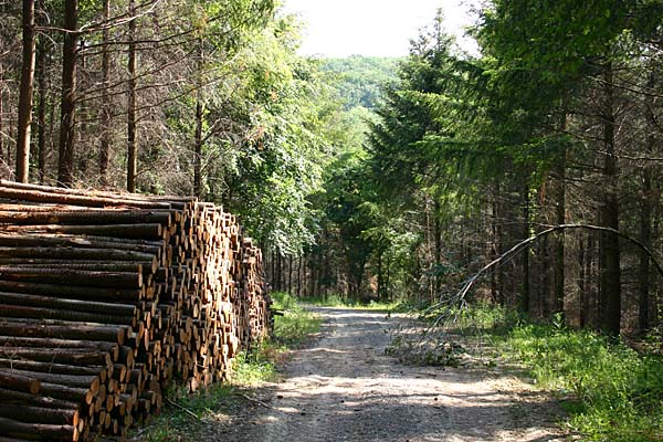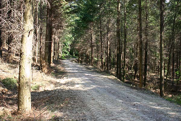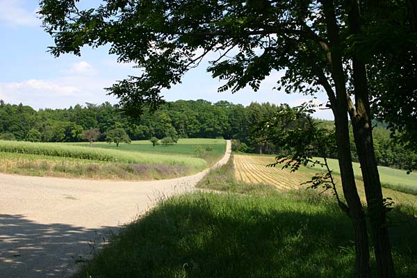 durch den Wald. Der Weg führt aus dem Wald in den Neulinger Grund. |