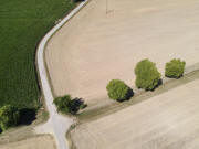 trifft, rechts in eine Wiese abbiegen (Fahrspuren). Auf dem linken Foto im