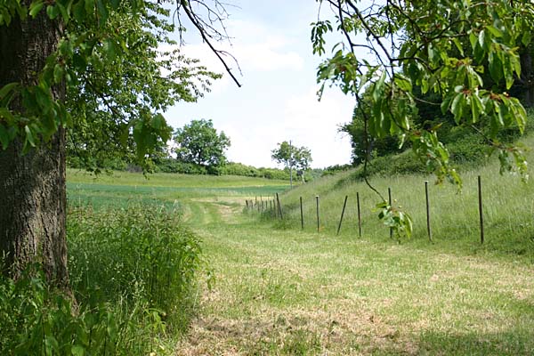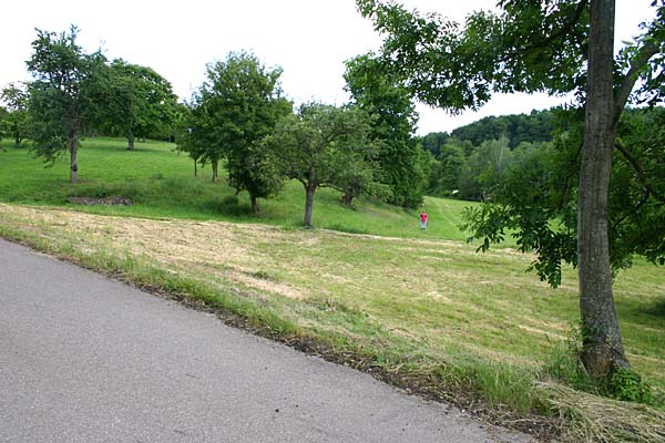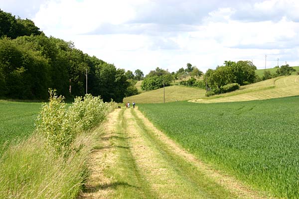 Der Feldweg trifft wieder auf den asphaltierten, von Nußbaum kommenden Normalweg. weiter auf der „Normalstrecke“ [3] |