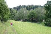 Hintergrund. Der Weg führt unterhalb von Nußbaum durch die Steig-Klamm nach Süden vorbei an dem Schäferbetrieb. |