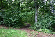 Vorbei an Wiesen wird nach wenigen hundert Metern der Wald erreicht. |