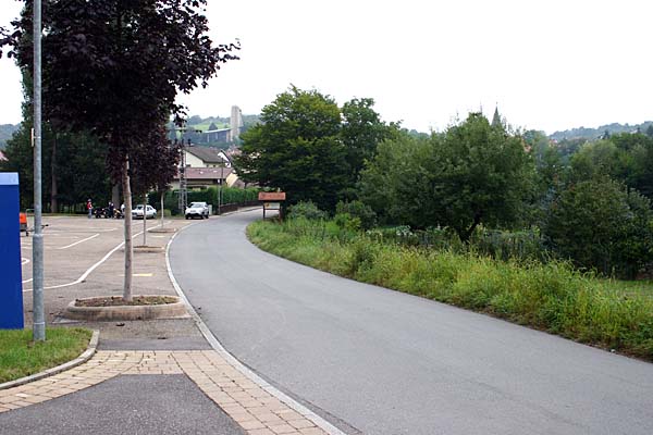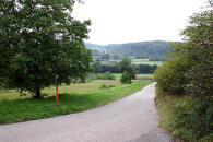 Vor dem Sportplatz rechts abbiegen und leicht fallend zur