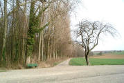 wurde. Hier jedoch nicht wieder zum Waldrand herunter, sondern rechts abbiegen. Schild rechts an der Kreuzung: Rittenhardt, Abt. VI-12 (die Ziffern sind handgeschrieben) |