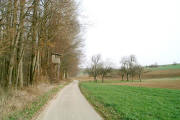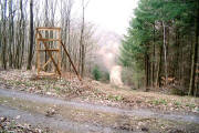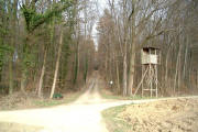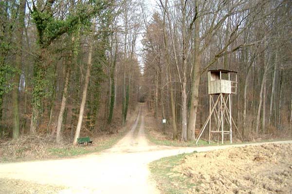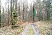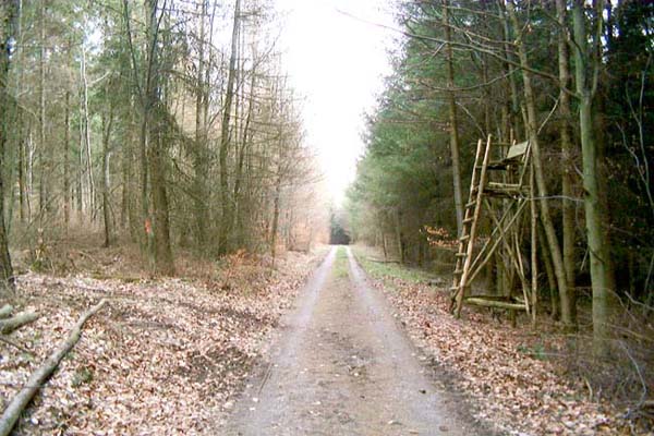 Ca. 10 m nach einem Hochstand links in einen kaum erkennbaren Waldpfad