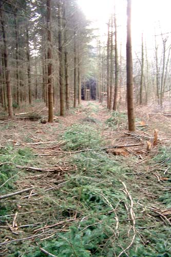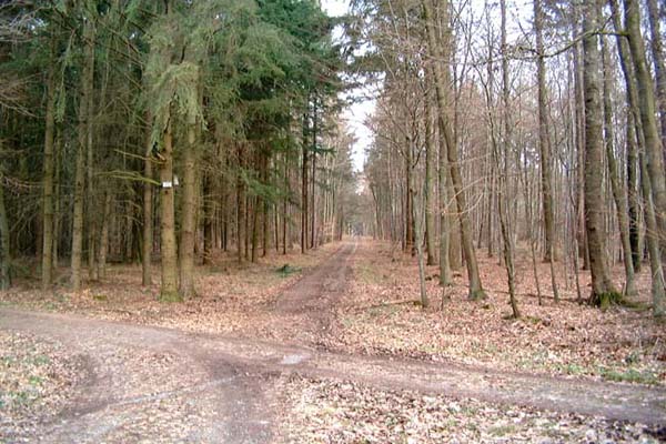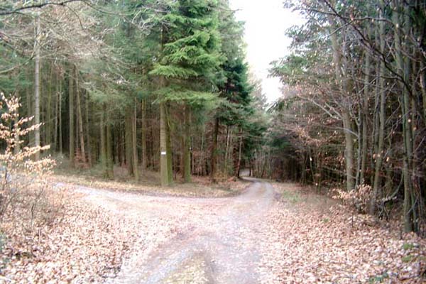 Den zweiten Forstweg links in den Wald einbiegen -