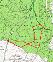 markiert. Nach kurzer Zeit mündet dieser Pfad wieder in einen Hauptweg, der zum Waldrand herunterführt. Vom Waldrand nur noch ein kurzes Stück zurück zum Ausgangspunkt, dem Waldparkplatz. |