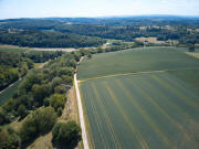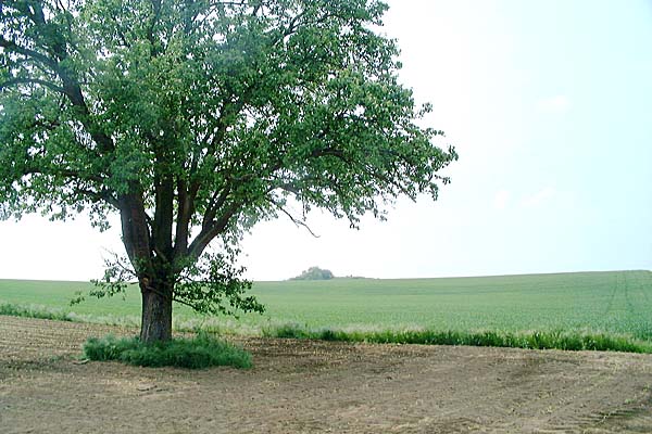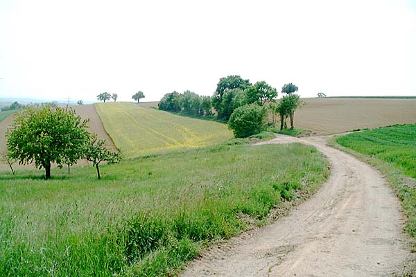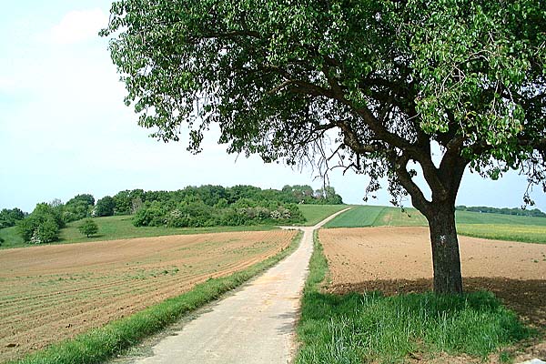 Dem Weg durch Felder folgend immer geradeaus Richtung Stein. |