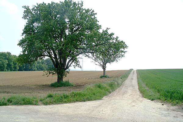 (Foto rechts) Foto links und unten: Blick vom Rod auf die Wegkreuzung. |