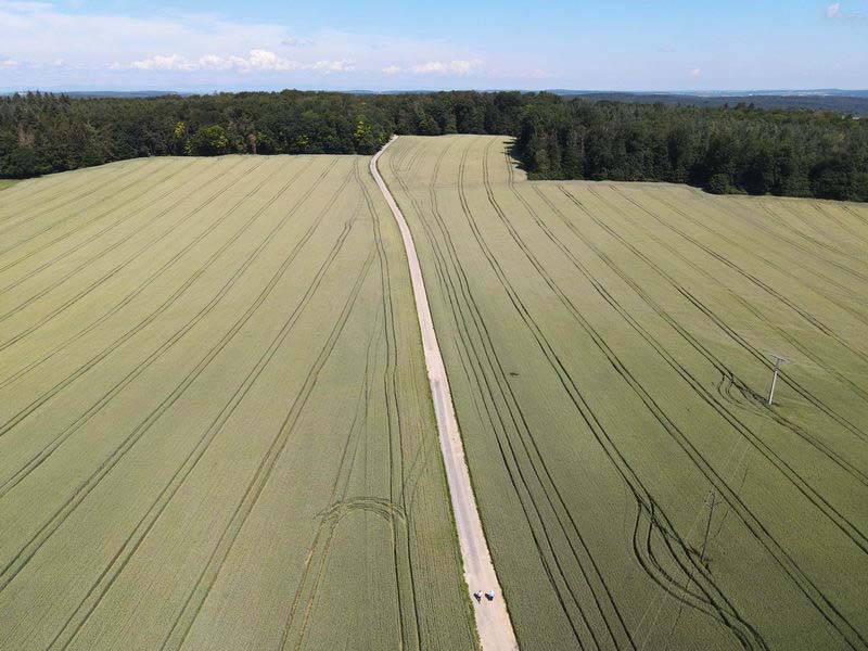 Aus dem Wald weiter über Wirtschaftswege zum Heimbronner Hof. |