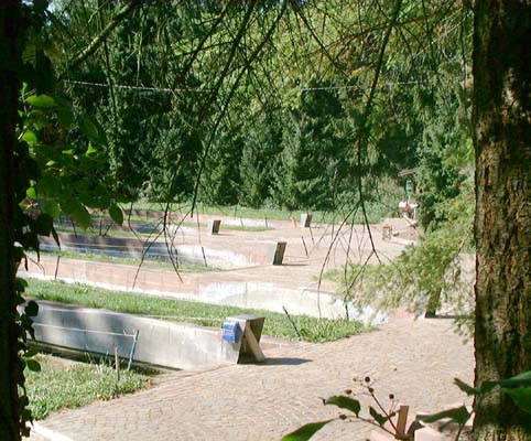Stein über die Heimbronner Strasse verlassen. Nur kurz hinter dem Ort liegt rechts die Forellenzuchtanlage. |