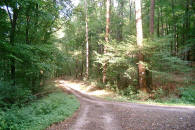 Vorbei an Wiesen wird nach wenigen hundert Metern der Wald erreicht. |