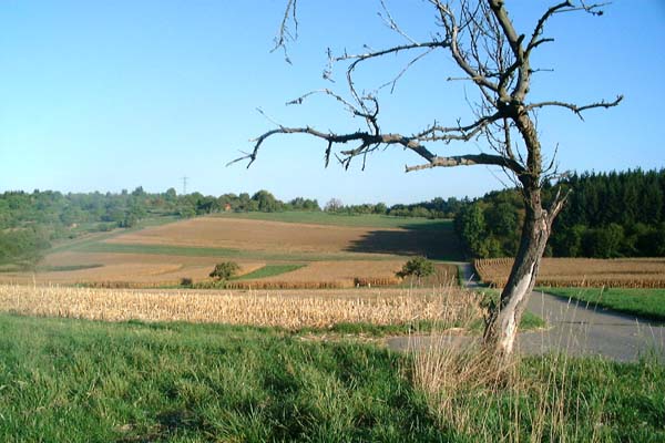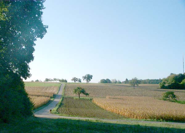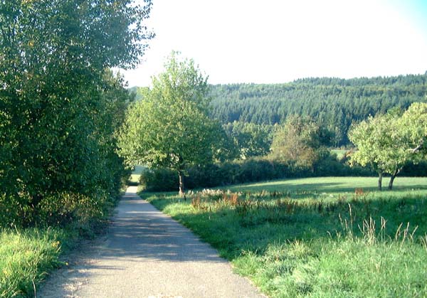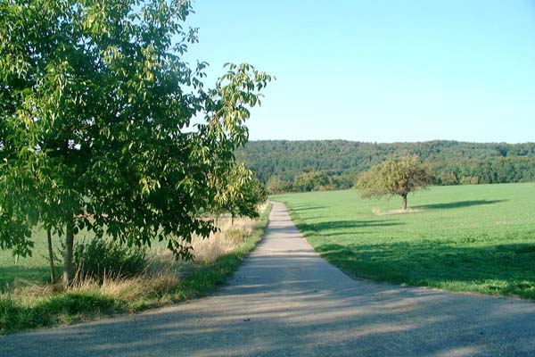 Sennich nach Eisingen. Vom Sennich ein Blick zurück auf den Eiselberg und den Weg am Waldrand entlang. |