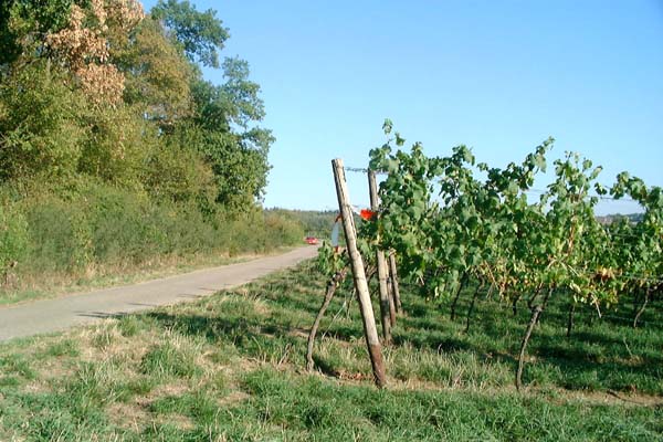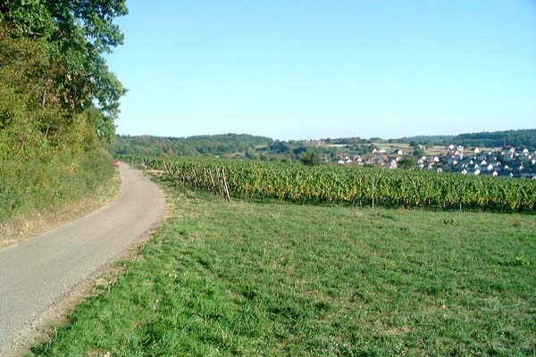 Weiter nach Eisingen bis zum Weingut Keller. Dort links abbiegen und nach einigen hundert Metern am CVJM-Haus vorbei Richtung Weinberge. |