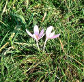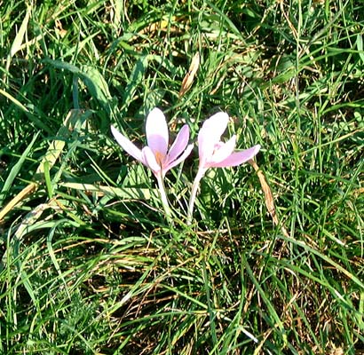 An Wiesen mit Blumen vorbei bis zum Ende des asphaltierten Weges. |