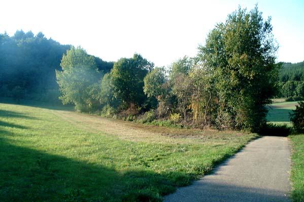 eine Wiese abbiegen und weiter zum Waldrand.