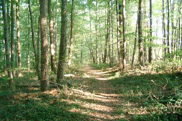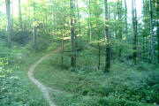 einen nur schwer erkennbaren Waldpfad einbiegen.